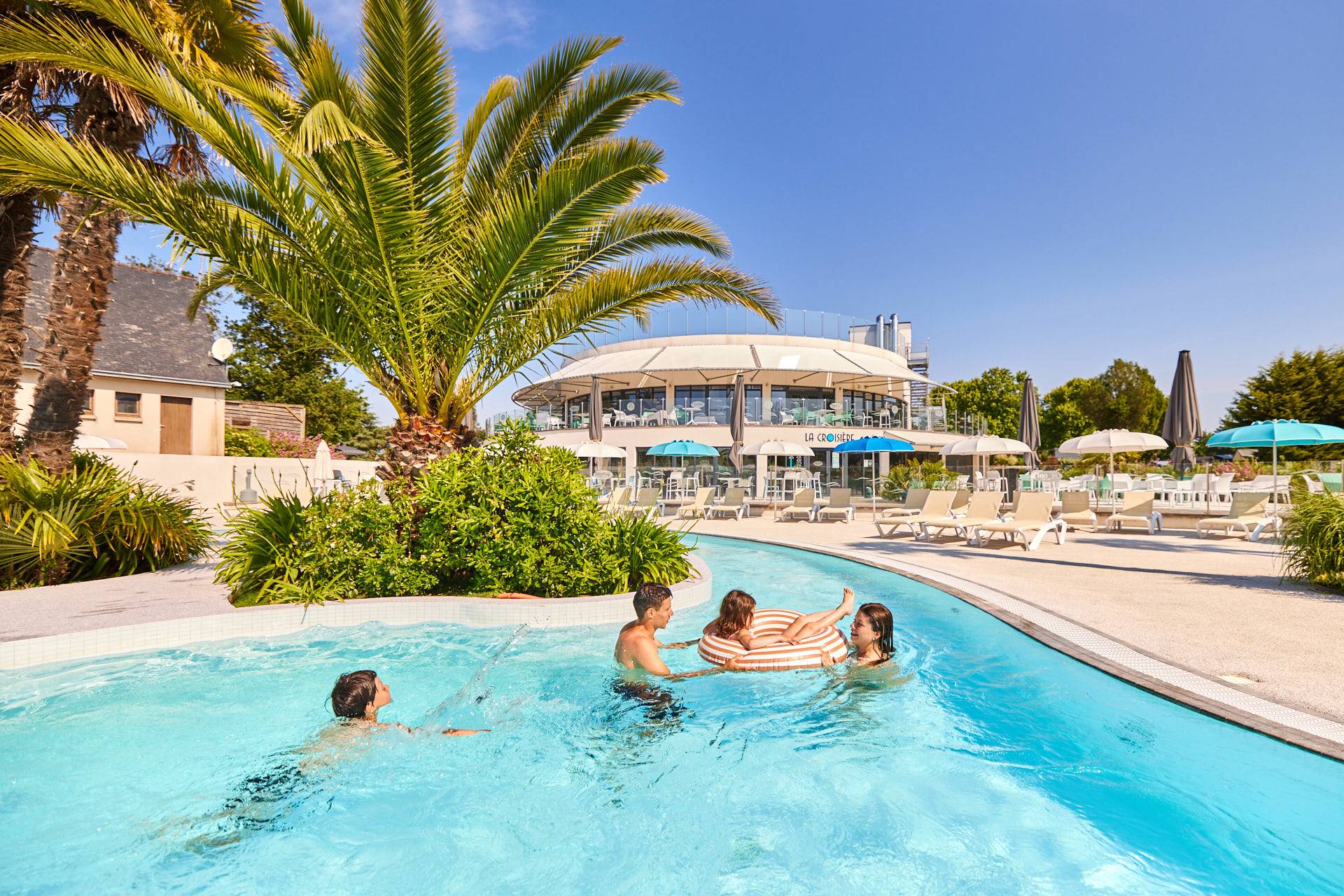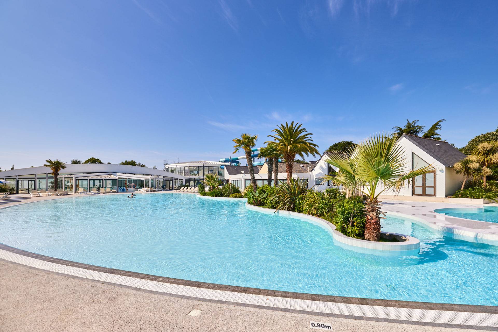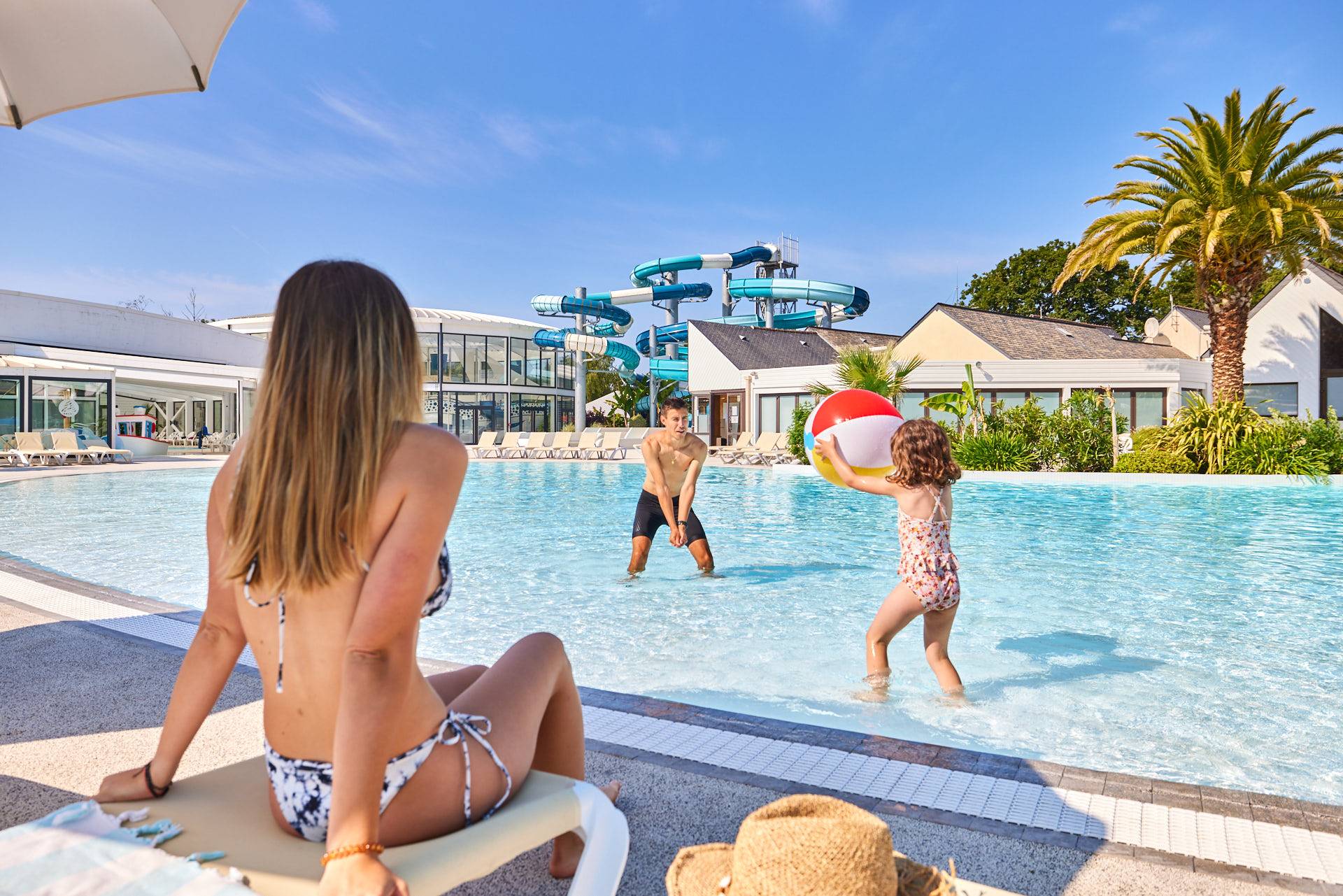 As soon as the sun shines over Fouesnant, lay your towel on the sun loungers surrounding our 700m² outdoor area. Fully heated, the outdoor pool features a gentle slope (from 10cm to 1.10m) to suit all family members safely.